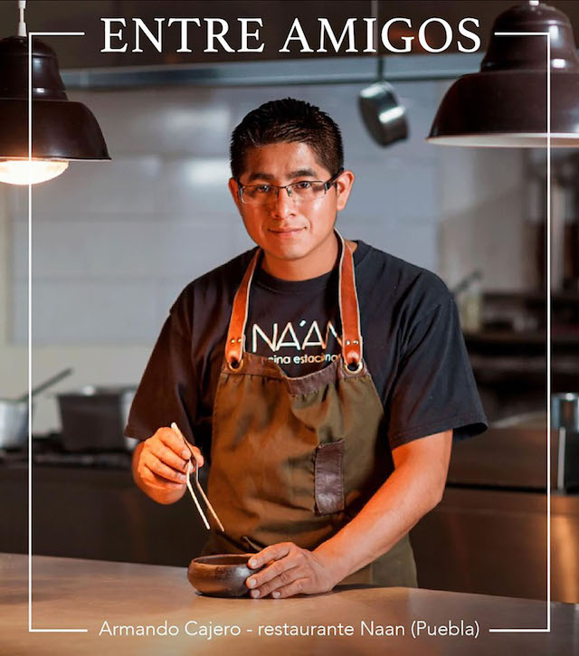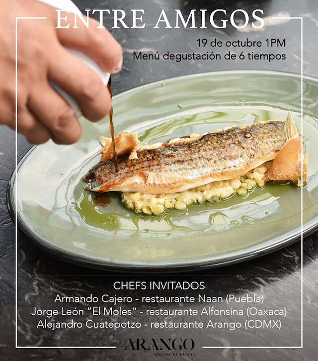 Ciudad de México, 2 de octubre (MaremotoM):- El sábado 19 de octubre llegarán a su cocina los chefs Armando Cajero, de “Na’an Cocina Estacional” de Puebla y al chef Jorge León, de “Alfonsina” de Oaxaca. El menú será de 6 tiempos y se servirá tanto en la comida como en la cena.