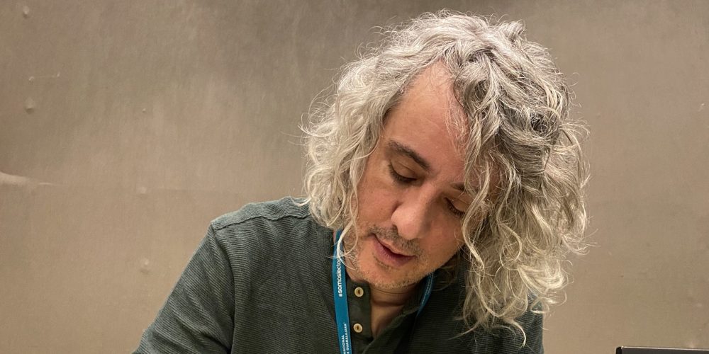 Lo estoy esperando para la entrevista y cuando entra a la sala es imposible no notarlo, con su sonrisa amable y su cabellera alborotada, de ahí el cariñoso apodo con que lo nombran, el chascas. Uno pensaría que alguien tan luminoso no podría internarse en la oscuridad de sus personajes con tanta facilidad, pero así es.