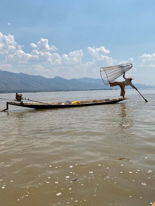 La imagen más representativa de este lugar son los pescadores tradicionales, cuya técnica consiste en remar con el pie para trabajar con las manos y con sus enormes redes en forma de cesto. Su técnica ha pasado de generación