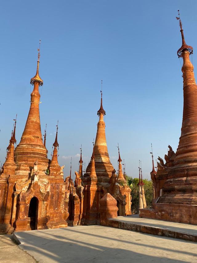 Uno de los lugares más interesantes para explorar es Inthein ¿puedes imaginar mas de mil pagodas en un mismo lugar? Ahí las tienen y es increíble caminar entre ellas. Algo mas para visitar son los talleres de artesanías, el que mas me gustó es donde fabrican Longyis, las faldas típicas de Myanmar tanto para hombre como para mujer. Ese taller tiene la particularidad de usar hilos hechos de flor de loto, la cual es abundante en la región.