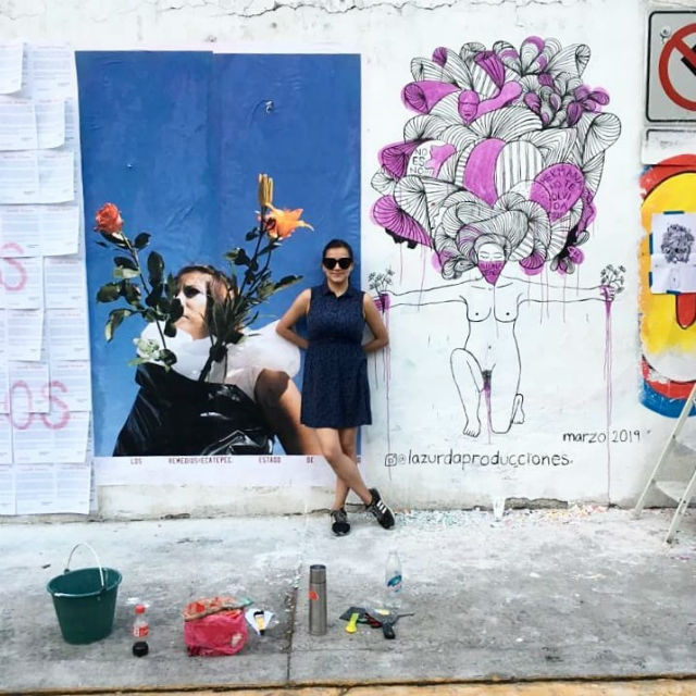 Tiene una labor de escritora y además pinta murales. El último de los cuales lo puso en Facebook, con un mensaje conmovedor: “Amigues, estoy muy contenta porque ayer concluí mi nuevo mural “Dos es familia” (3.5 x 4.5 mts), en pro de la visibilidad lésbica. Agradezco a Jocelyn Pantoja y al Centro de Artes y Oficios del Ajusco, por el apoyo y el espacio; también a la increíble Fernanda Piña por ayudarme en la realización y varias de estas imágenes. Un agradecimiento especial también al perreo, el hiphop y la electrocumbia, sin ellos nada de esto hubiera sido posible”.