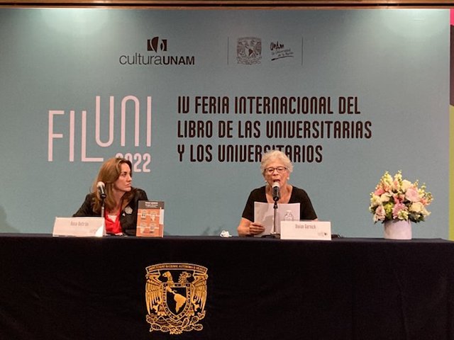 Fue ella, la pensadora neoyorquina, la que inauguró la Feria Internacional del Libro de las Universitarias y los Universitarios (Filuni), haciendo una conferencia magistral: Escrituras en la pospandemia, acompañada por la escritora y funcionaria de la UNAM, Rosa Beltrán.