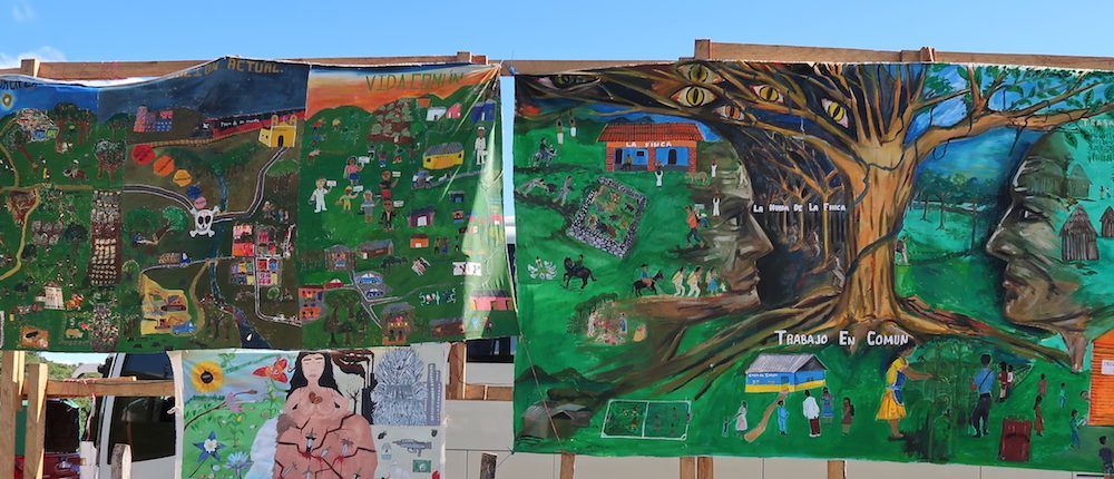 A la mañana siguiente, luego de varias horas de camino en autobús, un epicentro empezó a sentirse en el pecho y el estómago: varios carteles condenando la guerra en cualquier parte del mundo y “las destrucciones de gobiernos capitalistas”, y luego los milicianos zapatistas. Los ojos se nos abrían y las sonrisas —sin contar los clic en los celulares— brotaron.