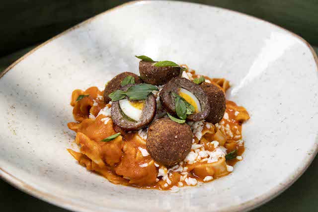 El menú ofrece platillos como ensalada de betabeles horneados, esquites negros con rabo de res braseado, tartar de res, fetuccini hecho en casa con albóndigas rellenas de huevo, entrecot braseado con mole verde, pato confitado, pollito de leche rostizado, hamburguesa Nogal y panque de nata con frutos rojos, entre otros.