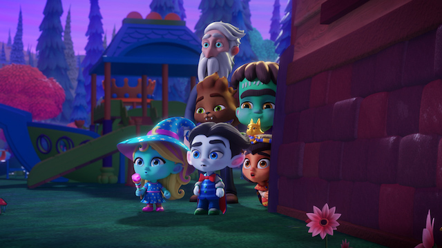 Por otra parte, en Súper Monsters, los hijos de los monstruos más famosos de la historia aprenden en el preescolar Los Pinos a ser los mejores de esta mágica tierra. Drac, Cleo, Lobo, Katya, Zoe y Frankie son niños con doble identidad: en el día son humanos y en la noche se transforman en pequeñas versiones de sus padres. Por eso las clases comienzan cuando se pone el sol.