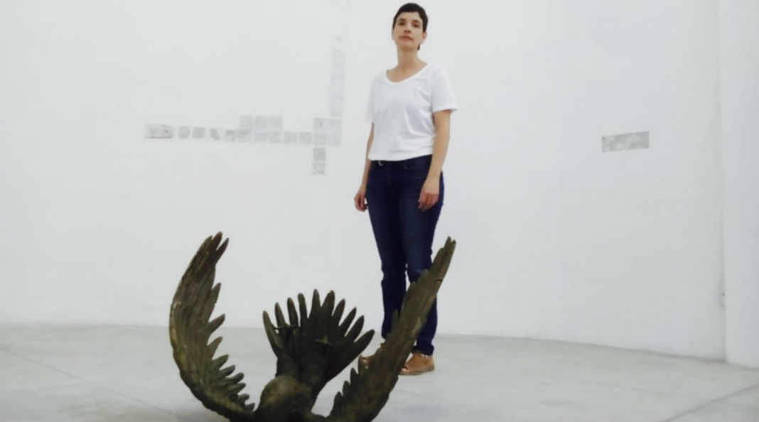 La caída del águila de Cynthia Gutiérrez, es en cierta forma la derrota del símbolo adorado por México, emblema de la supuesta “identidad” nacional. Al recordarle esto durante el recorrido de la exposición y preguntarle si se atrevería a soltar alguna vasija milenaria como Ai Weiwei, me recuerda el Proyecto Paralelo, que fue una exposición montada recientemente en la Ciudad de México, en la que una de las piezas son los fragmentos de una mujer de barro que dejó caer.
