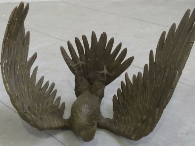 Ahí está una águila caída con el nombre de “El fracaso de la libertad”, de 2014. Esta ave patas p’arriba, de bronce, me recuerda —a propósito de que hace nos días vino el artista chino Ai Weiwei a México por la apertura de un exposición en el MUAC—, el jarrón de cerámica milenario de la dinastía Han, que soltó de sus manos mientras era fotografiado. Dice el artista chino al respecto que Mao decía que: “para construir una nueva civilización había que destruir la vieja”. Y eso fue lo que hizo “simbólicamente”Ai Weiwei.