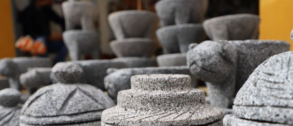 Uno de los instrumentos con mayor tradición en la cocina mexicana es el molcajete, usado para triturar principalmente chiles y obtener exquisitas salsas. La identidad del Pueblo Mágico de Comonfort está en sus molcajetes, los cuales artesanos elaboran completamente a mano de principio a fin. Todas las piezas que aquí se elaboran son únicas y tendrás la oportunidad de elegir entre una gran variedad de molcajetes, desde los más pequeños, hasta unos muy grandes.