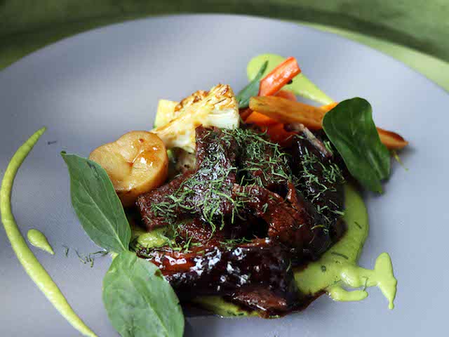 El menú ofrece platillos como ensalada de betabeles horneados, esquites negros con rabo de res braseado, tartar de res, fetuccini hecho en casa con albóndigas rellenas de huevo, entrecot braseado con mole verde, pato confitado, pollito de leche rostizado, hamburguesa Nogal y panque de nata con frutos rojos, entre otros.