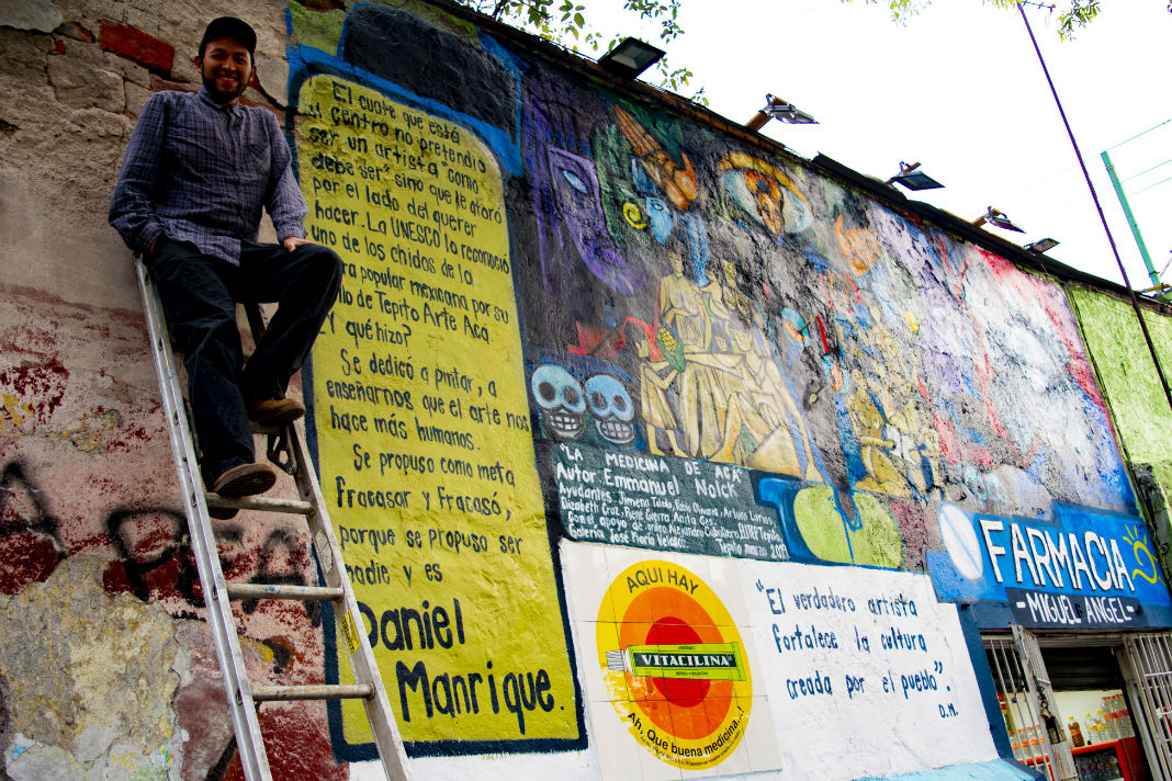 Ciudad de México, 28 de marzo (MaremotoM).- La labor del muralista Daniel Manrique, fallecido en 2010, tendrá un nuevo espacio homenaje en el barrio de Tepito. El artista Emmanuel Nolck ha elaborado un mural, titulado “La medicina de acá”, donde la figura del muralista internacional es el tema central, utilizando recursos inspirados en los murales del propio Manrique, mezclados con su toque personal. Este mural se podrá admirar en la barda de la Farmacia Miguel Ángel, en el Eje 1 Oriente (Vidal Alcocer), esquina Costa Rica, muy cerca del metro Tepito.