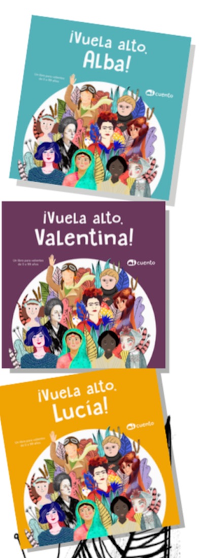 Fundada en Barcelona el 2015 por Muriel Bourgeois y Javier Falco, MiCuento, startup especializada en convertir a las niñas y niños en los protagonistas de sus historias favoritas, publica ¡Vuela alto! El cuento, escrito e ilustrado por mujeres, es el diario de una niña (o niño) que ve una estrella fugaz y le pide el deseo de ser más valiente. Entonces, empieza a recibir sobres en su buzón: llevan su nombre y dirección y son muy especiales…